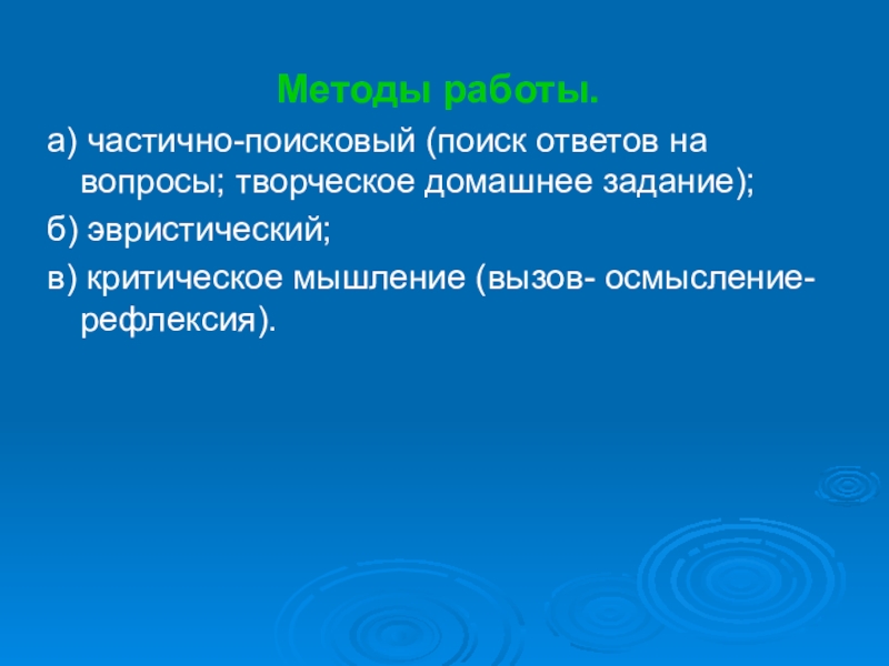 Слайд 7Методы работы.