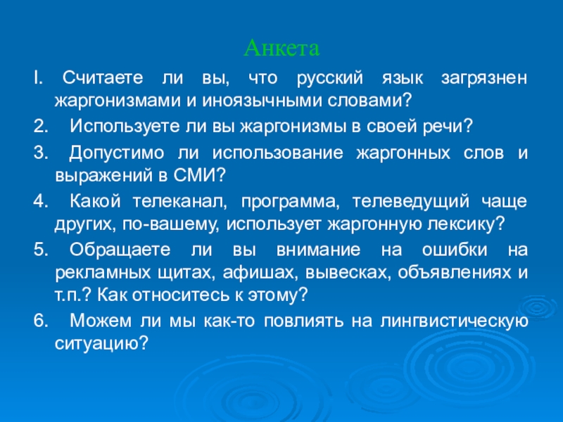 I. Считаете ли вы, что русский язык загрязнен жаргонизмами и иноязычными