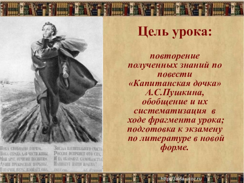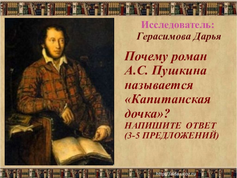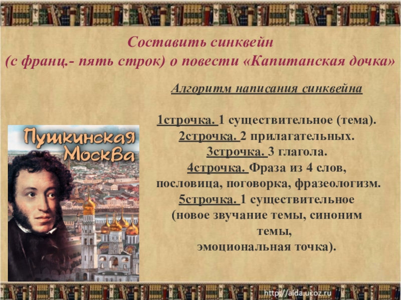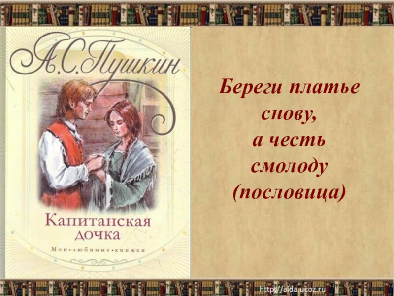 (с франц.- пять строк) о повести «Капитанская дочка»