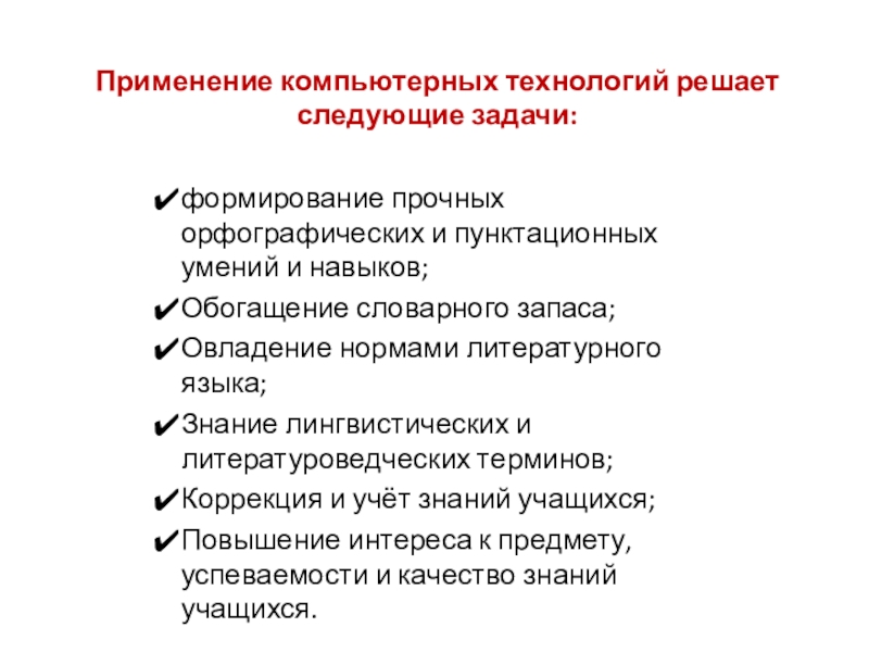 Слайд 4Применение компьютерных технологий решает следующие задачи:
