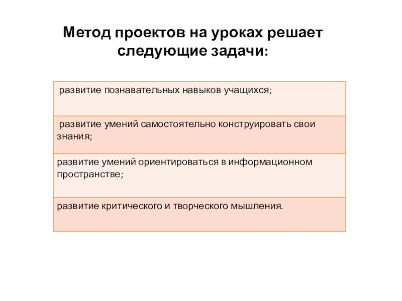 Слайд 8Метод проектов на уроках решает следующие задачи:
