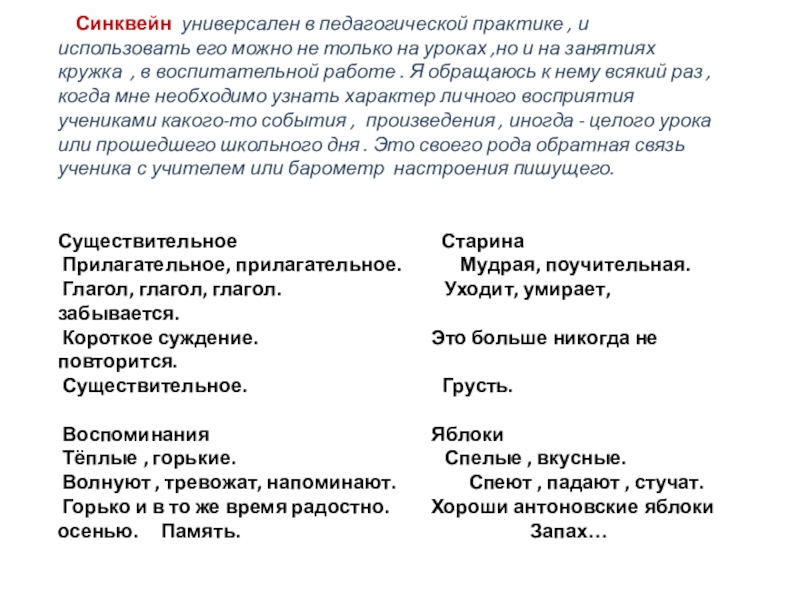 Синквейн универсален в педагогической практике , и использовать его