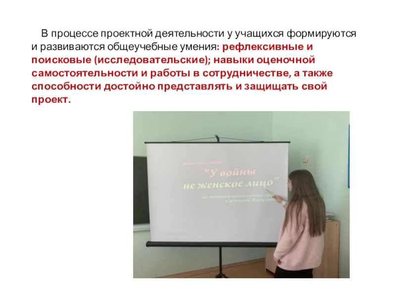 Слайд 9 В процессе проектной деятельности у учащихся формируются и развиваются