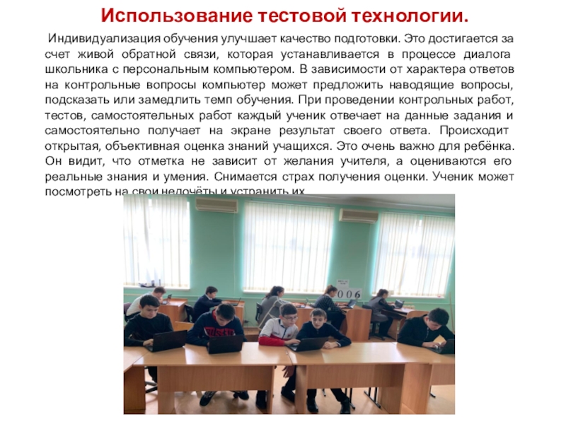 Слайд 6Использование тестовой технологии.