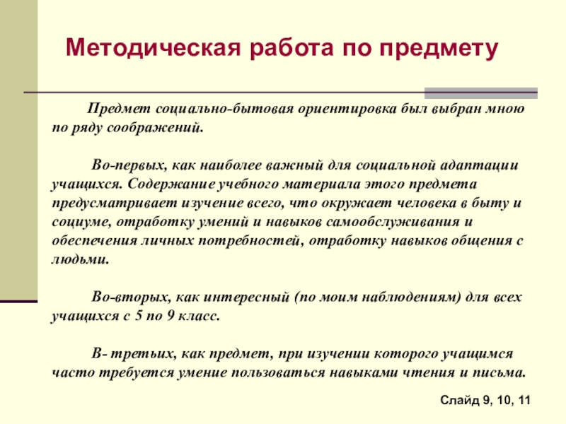 Предмет социально-бытовая ориентировка был выбран мною по ряду соображений.