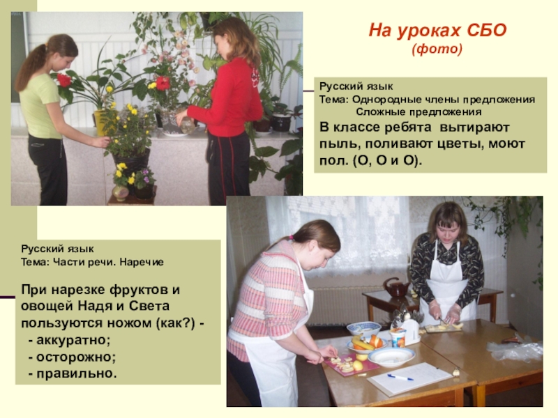 При нарезке фруктов и овощей Надя и Света пользуются ножом (как?) -