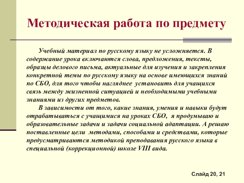 Во-первых, как наиболее важный для социальной адаптации учащихся. Содержание учебного материала этого предмета предусматривает изучение всего, что окружает человека в быту и социуме, отработку умений и навыков самообслуживания и обеспечения личных потребностей, отработку навыков общения с людьми.