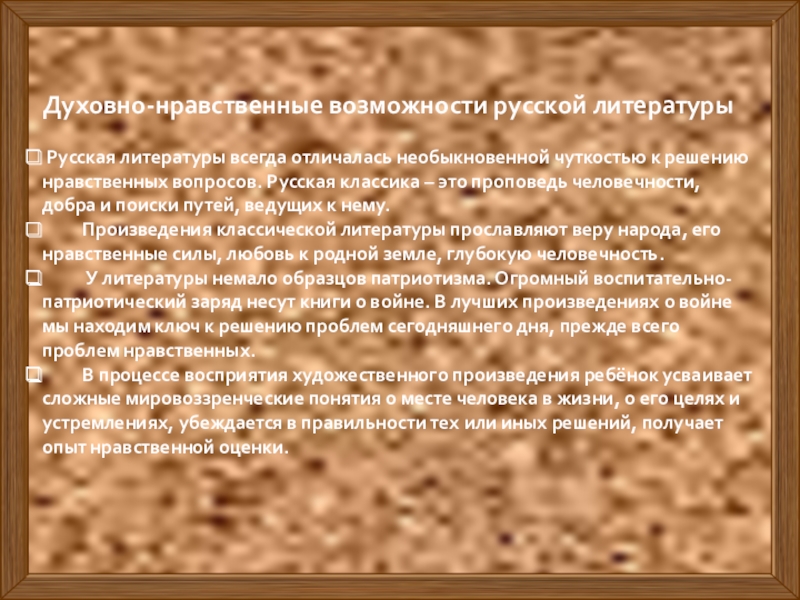 решению нравственных вопросов. Русская классика – это проповедь человечности, добра и поиски путей, ведущих к нему.