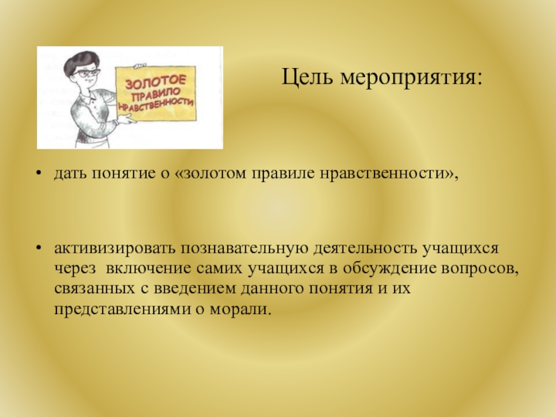 равными правами и свободами, обязанностями. Реализация «Золотого правила нравственности».