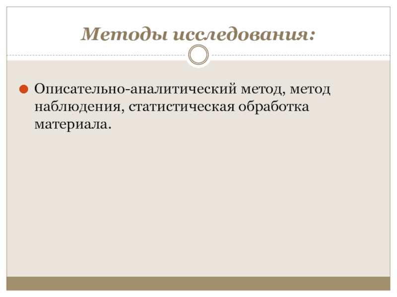 Описательно-аналитический метод, метод наблюдения, статистическая обработка материала.