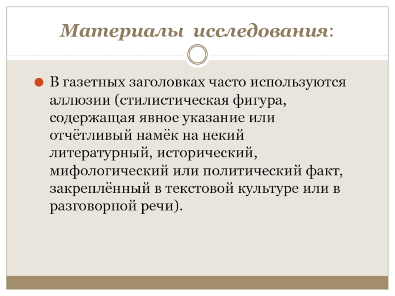 Анализ особенностей стилистического приёма аллюзии в газетных заголовках.