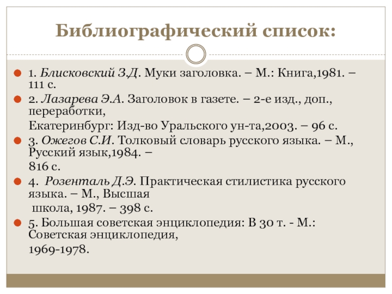 1. Блисковский З.Д. Муки заголовка. – М.: Книга,1981. – 111