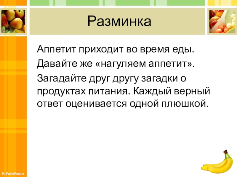 о продуктах питания. Каждый верный ответ оценивается одной плюшкой.