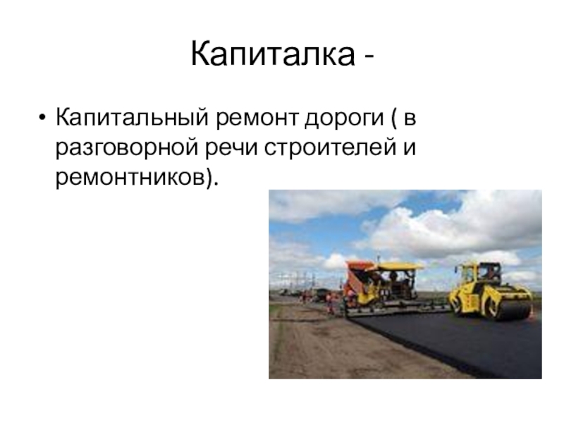 Капиталка - Капитальный ремонт дороги ( в разговорной речи строителей и ремонтников).