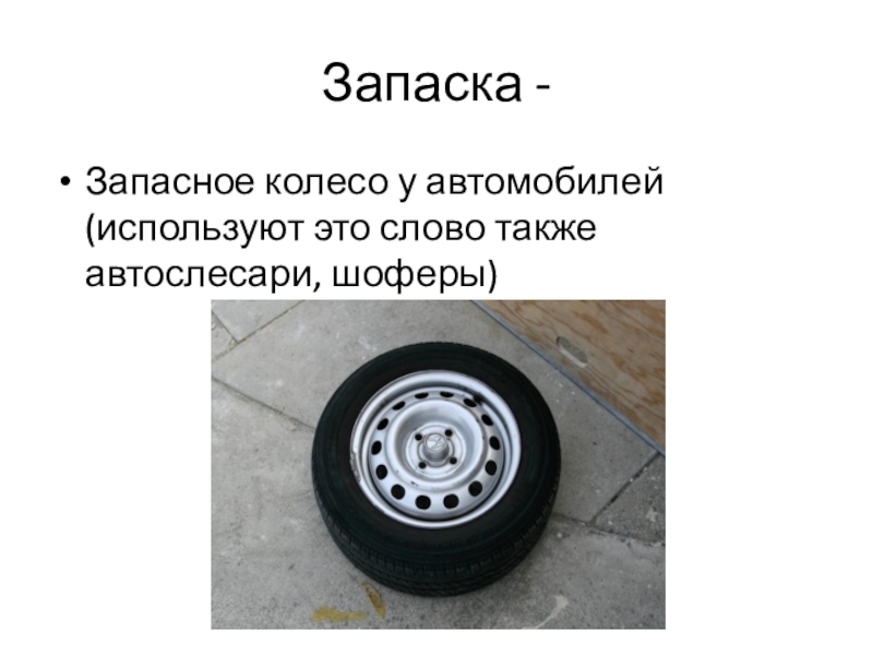 Запаска - Запасное колесо у автомобилей (используют это слово также автослесари, шоферы)