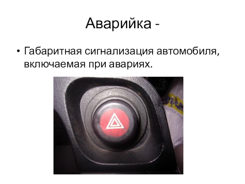 Аварийка - Габаритная сигнализация автомобиля, включаемая при авариях.