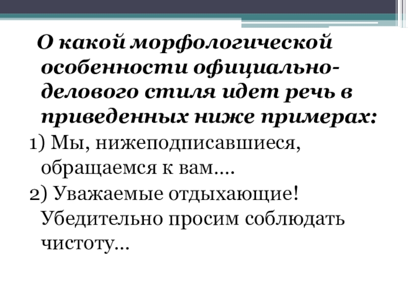 О какой морфологической особенности официально-делового стиля идет речь в приведенных