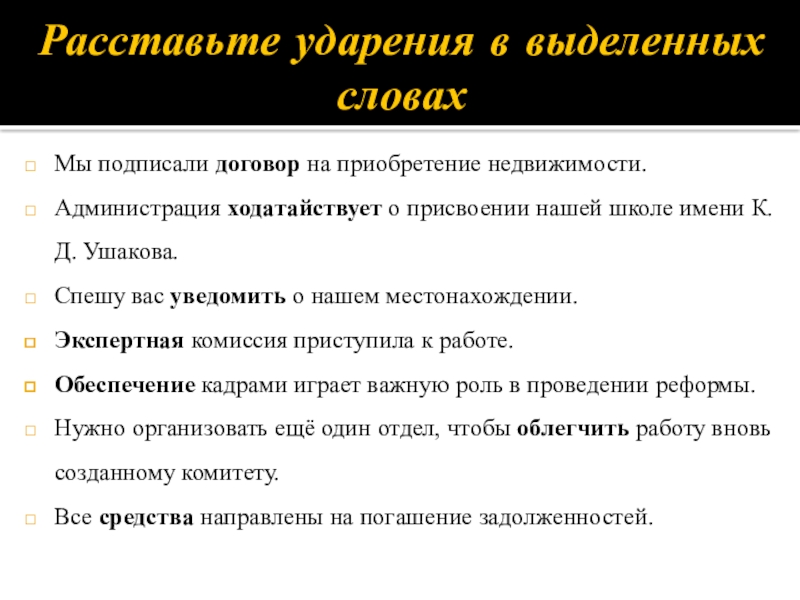 Расставьте ударения в выделенных словах