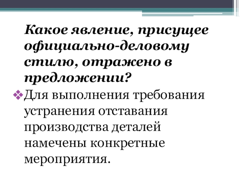 Какое явление, присущее официально-деловому стилю, отражено в предложении?