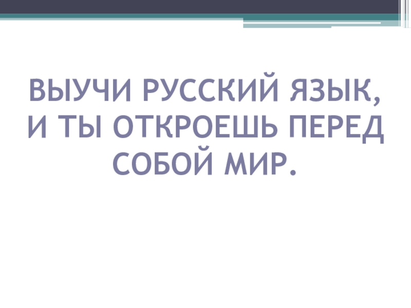 Слайд 2ВЫУЧИ РУССКИЙ ЯЗЫК, И ТЫ ОТКРОЕШЬ ПЕРЕД СОБОЙ МИР.