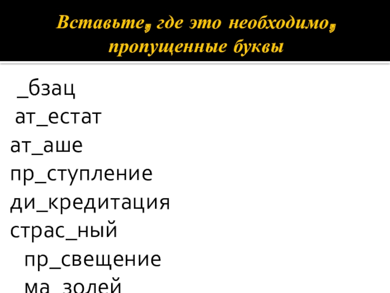 Слайд 20Вставьте, где это необходимо, пропущенные буквы