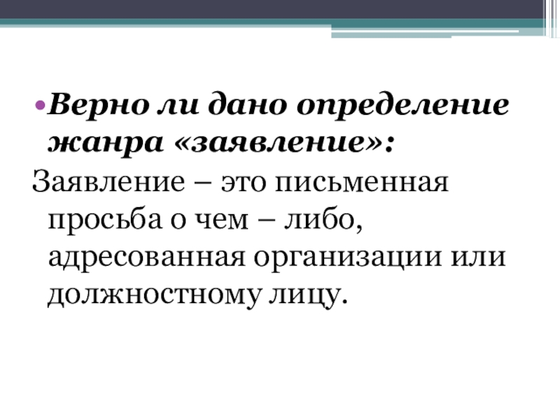 Верно ли дано определение жанра «заявление»: