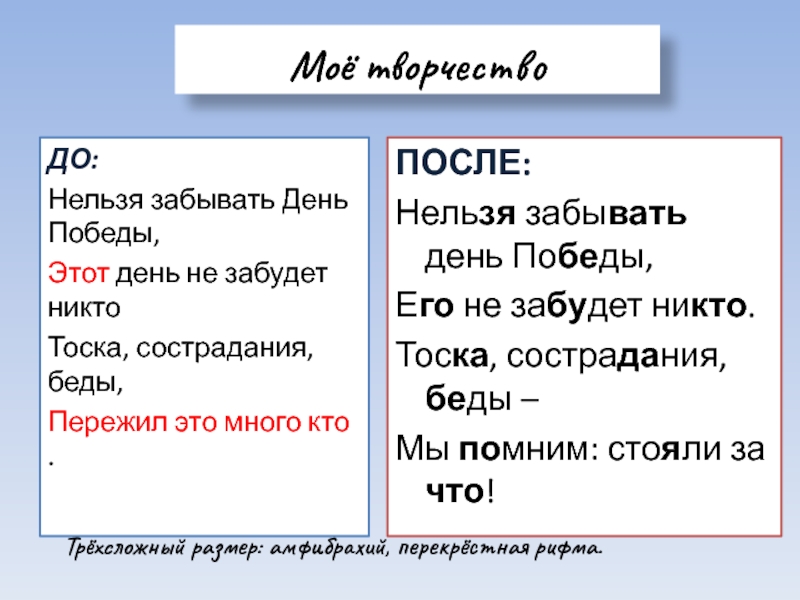 Трёхсложный размер: амфибрахий, перекрёстная рифма.
