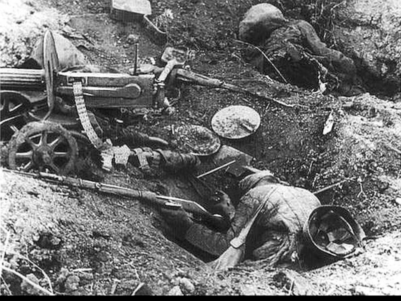 Это что-то вроде города мертвых. Ему не видно конца. Хотели взять себе по котелку и кружке, но все дырявое, простреленное. Плотность огня ужасает. Канистры, ящики - всё в решето превращено…