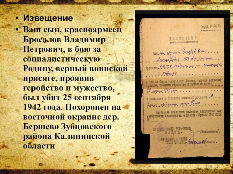 И никто перед нами Из живых не в долгу, Кто из рук наших знамя Подхватил на бегу, Чтоб за дело святое, За Советскую власть Так же, может быть, точно Шагом дальше упасть.