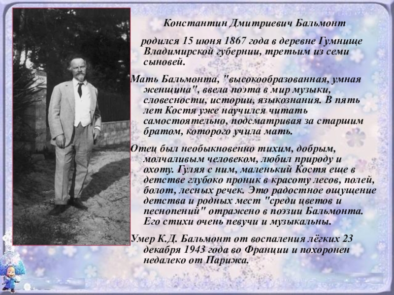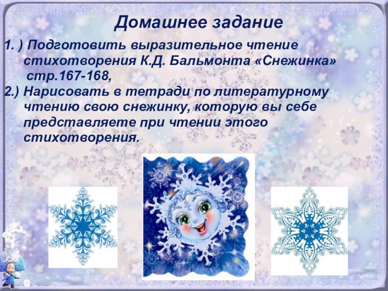 поэт пишет о снежинке?