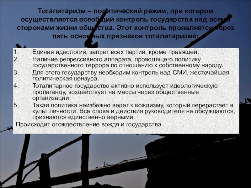 Тоталитарное государство активно использует идеологическую пропаганду, воздействует на массы через общественные организации