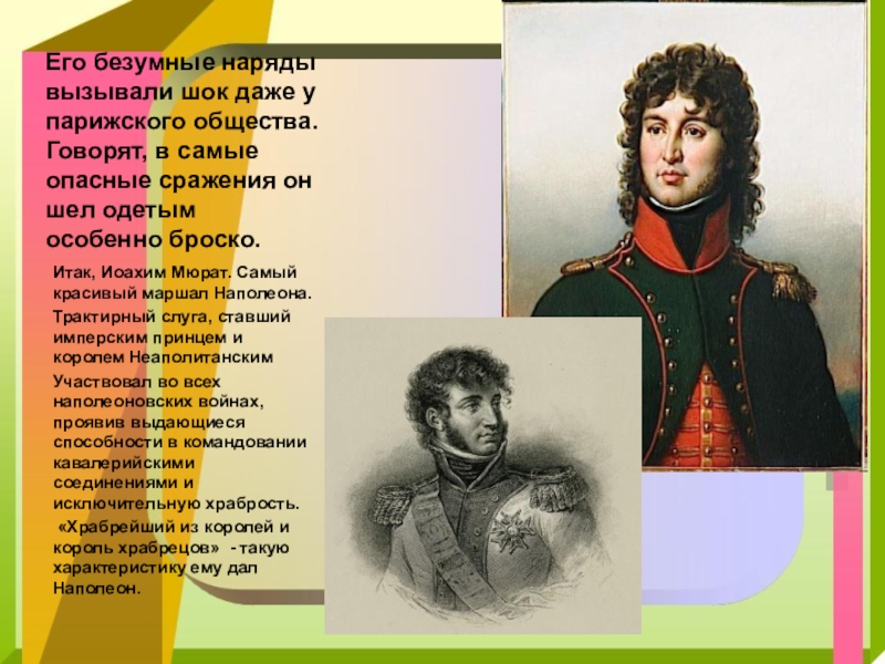 Итак, Иоахим Мюрат. Самый красивый маршал Наполеона.