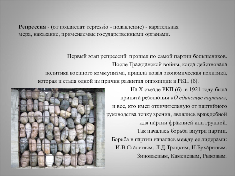 Слайд 3Репрессия - (от позднелат. repressio - подавление) - карательная мера, наказание, применяемые государственными органами.