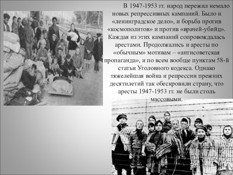 Слайд 20 В 1947-1953 гг. народ пережил немало новых репрессивных
