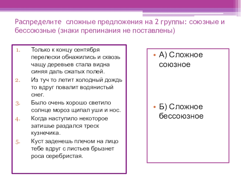 Б) Сложное бессоюзное