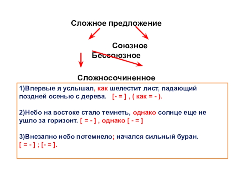 2)Небо на востоке стало темнеть, однако солнце еще не ушло за горизонт. [ = - ] , однако [ - = ]