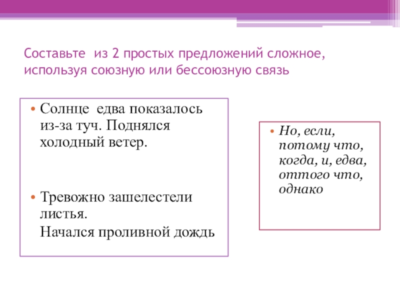 Но, если, потому что, когда, и, едва, оттого что, однако