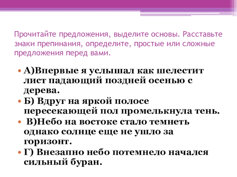 Г) Внезапно небо потемнело начался сильный буран.