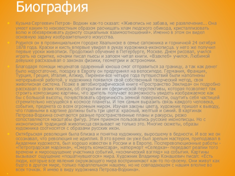 Кузьма Сергеевич Петров- Водкин как-то сказал: «Живопись не забава, не развлечение...
