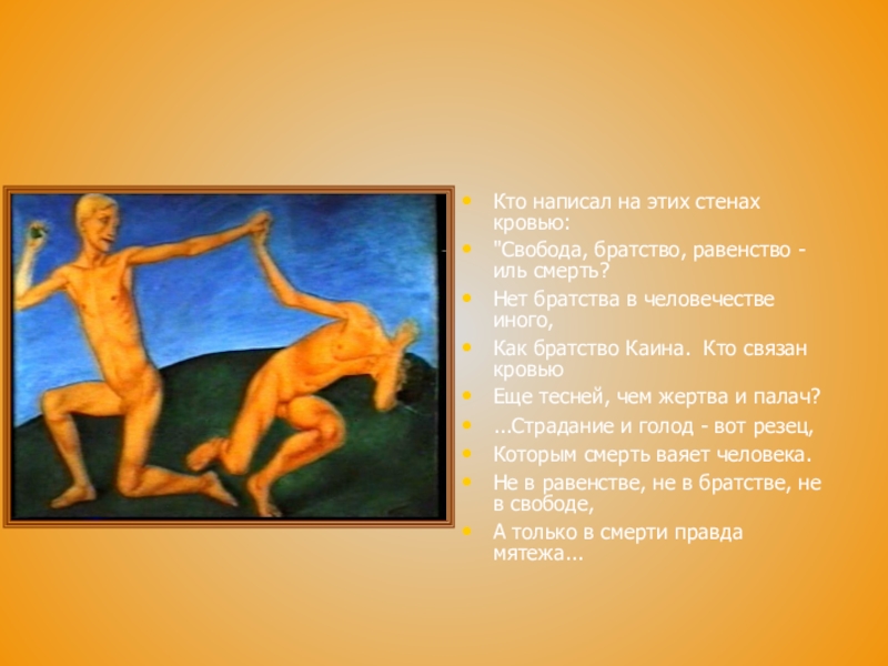 Слайд 10Кто написал на этих стенах кровью: