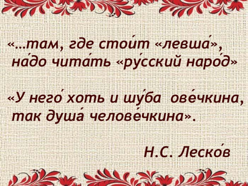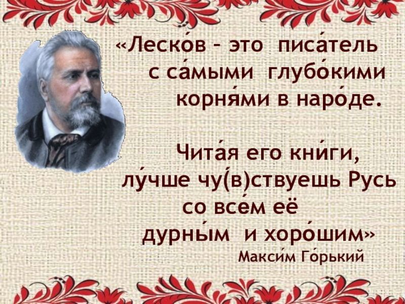Слайд 4«Леско́в – это писа́тель