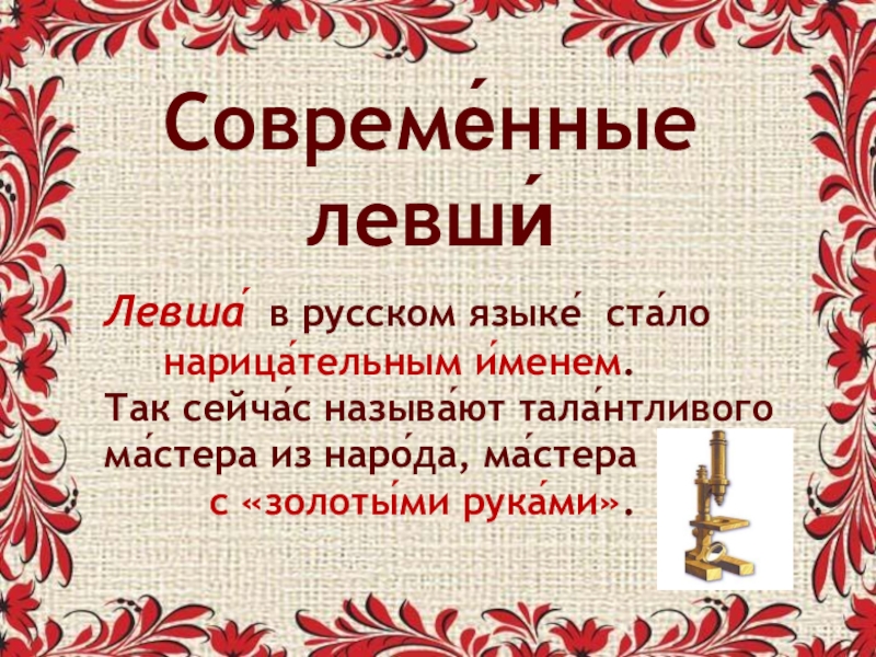 Слайд 21"... косо́й левша́,