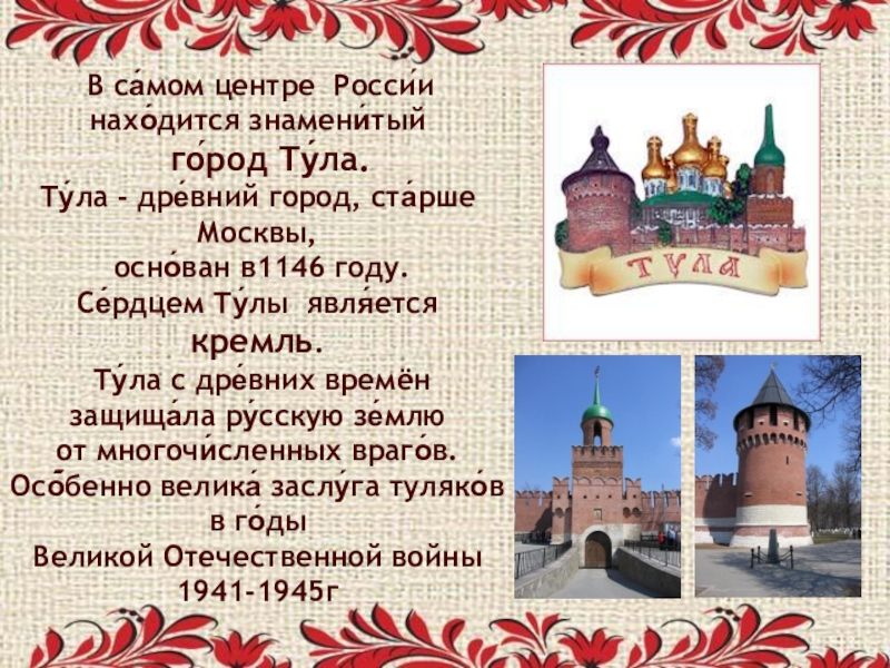 Ту́ла с дре́вних времён защища́ла ру́сскую зе́млю