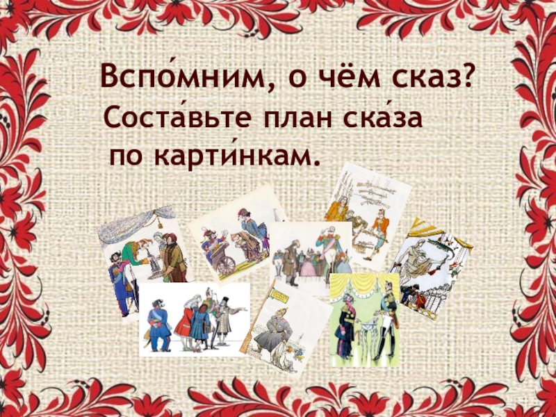 Слайд 8 Вспо́мним, о чём сказ?