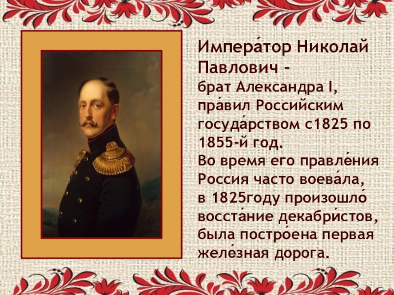 Слайд 35Импера́тор Николай Павлович –