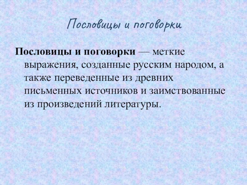 народом, а также переведенные из древних письменных источников и заимствованные из произведений литературы.