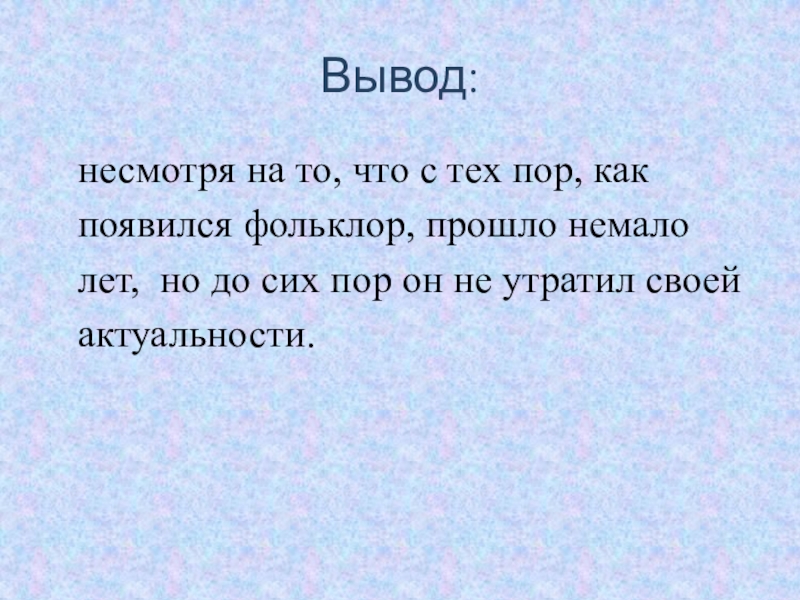 фольклор, прошло немало лет, но до сих пор он не утратил своей актуальности.