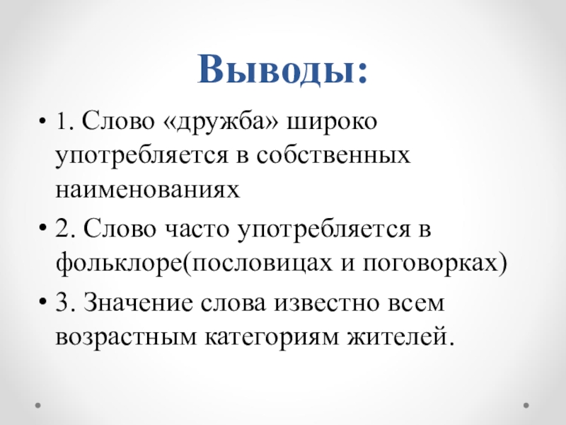 1. Слово «дружба» широко употребляется в собственных наименованиях