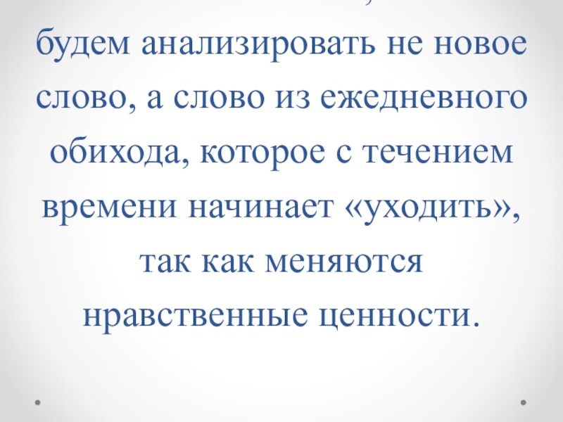 новое слово, а слово из ежедневного обихода, которое с течением времени начинает «уходить», так как меняются нравственные ценности.