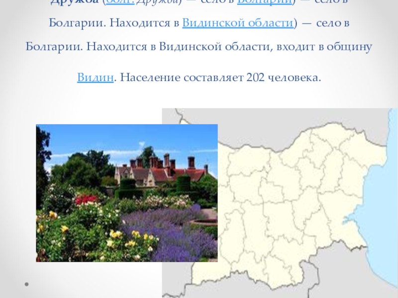 Слайд 22Дружба (болг. Дружба) — село в Болгарии) — село в Болгарии.
